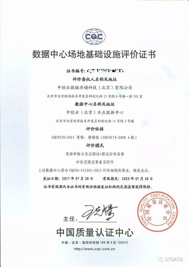 中經(jīng)云北京亦莊數(shù)據(jù)中心于2017年7月通過中國質(zhì)量認證中心的評測認證,獲得數(shù)據(jù)中心場地基礎(chǔ)設(shè)施A級認證,是國內(nèi)第13家通過該級別認證的數(shù)據(jù)中心。